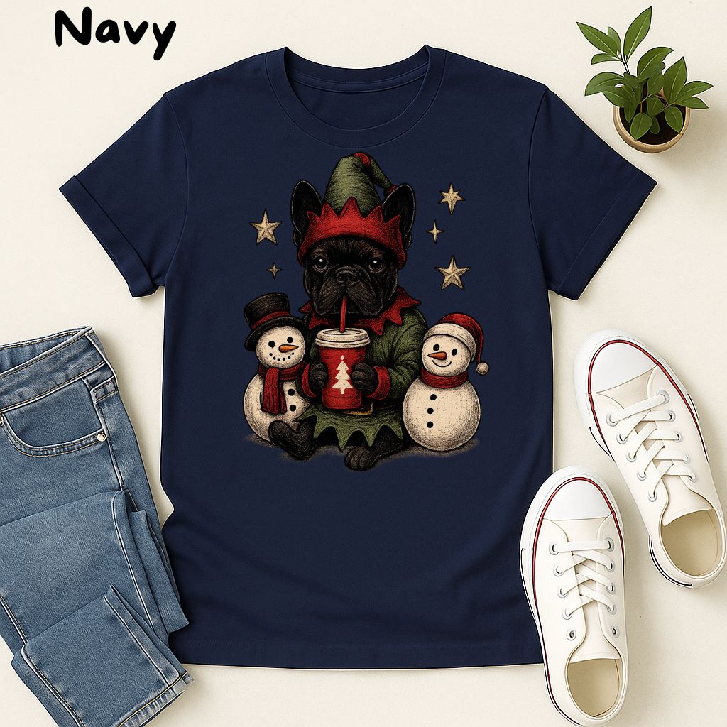 Diseño exclusivo con Bulldog Frances Negro en estilo navideño 🎄, ideal para los amantes de los perros y de la temporada festiva.